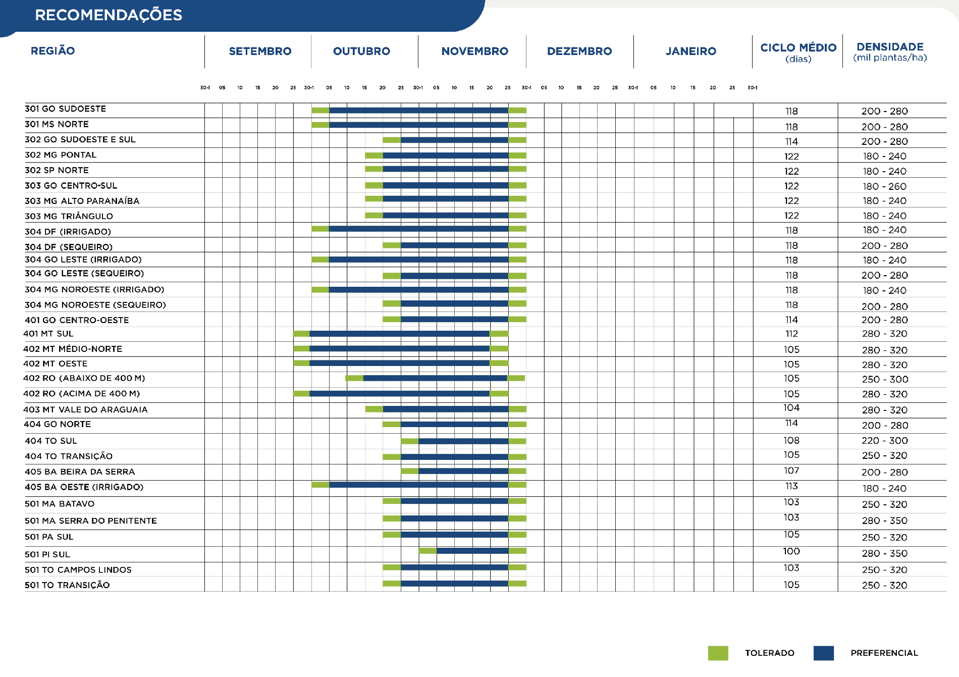 - Indicado para soja no cedo, mesmo em condições de menor luminosidade