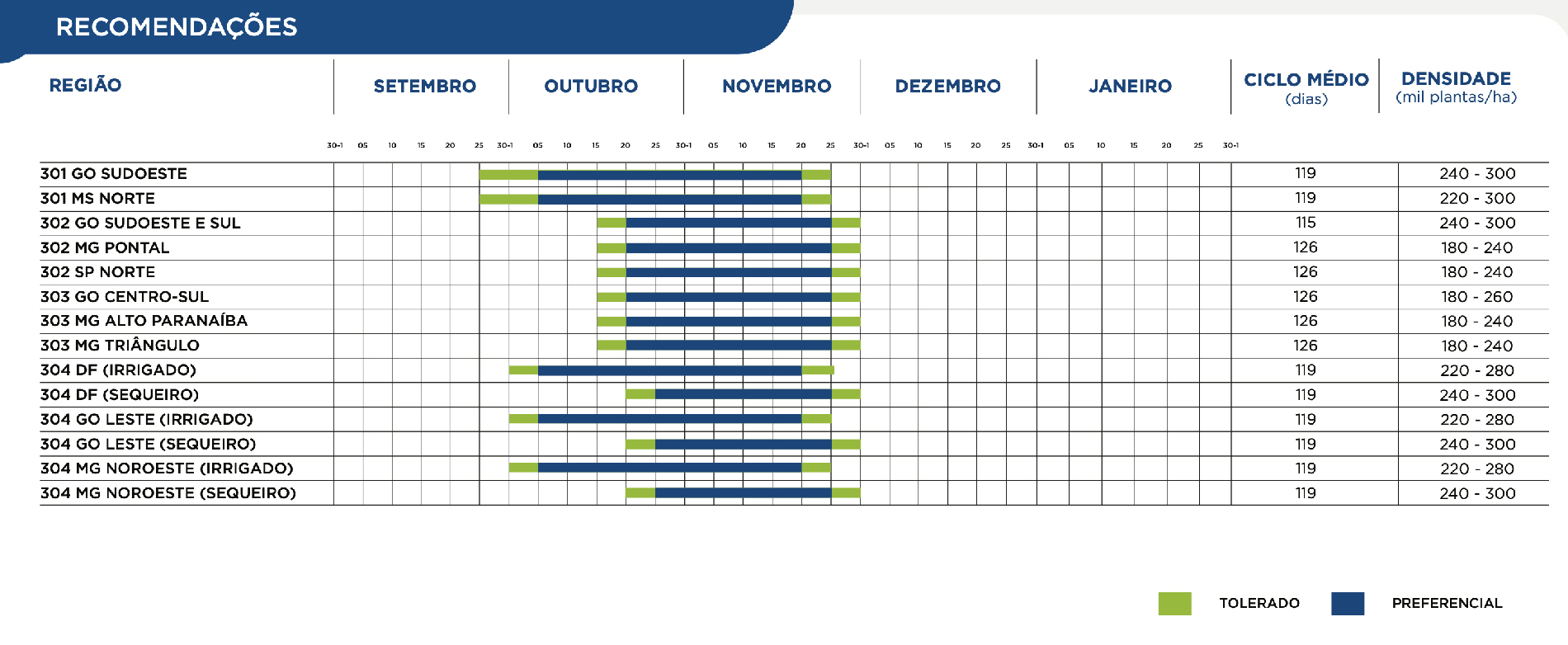 Pode haver variação no ciclo devido às condições edafoclimáticas. Dias após a emergência.